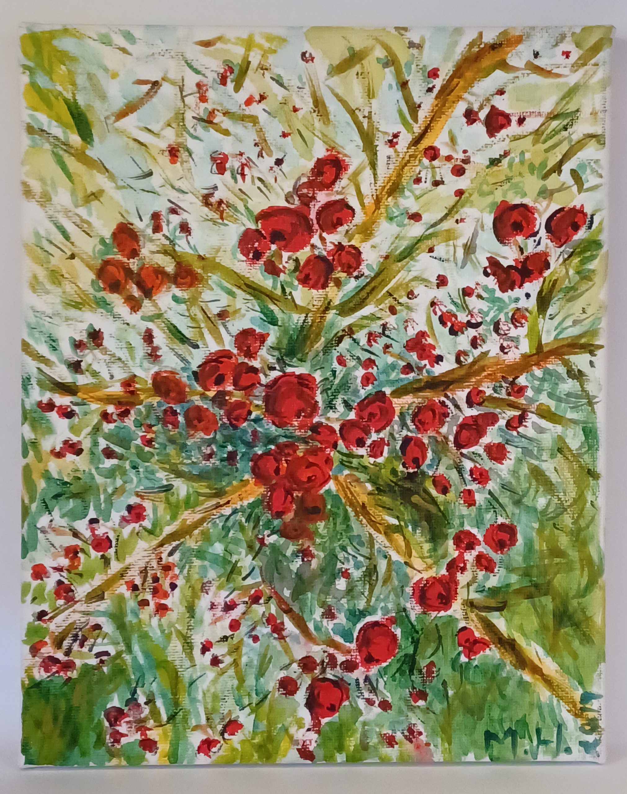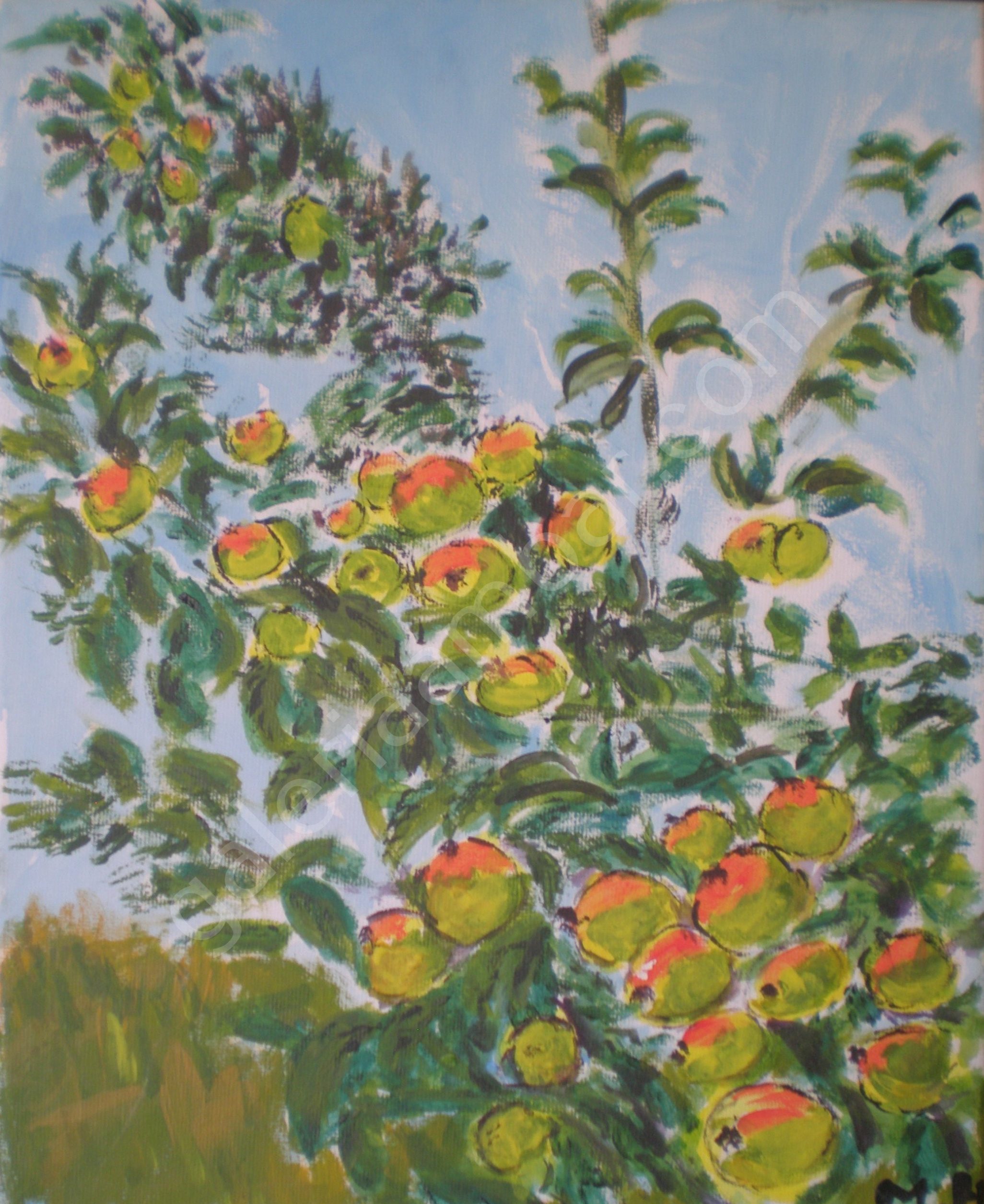Apple Tree / Manzano. Acrílico sobre lienzo. 2022. M. Toftegaard. Medidas 9cm x 12cm