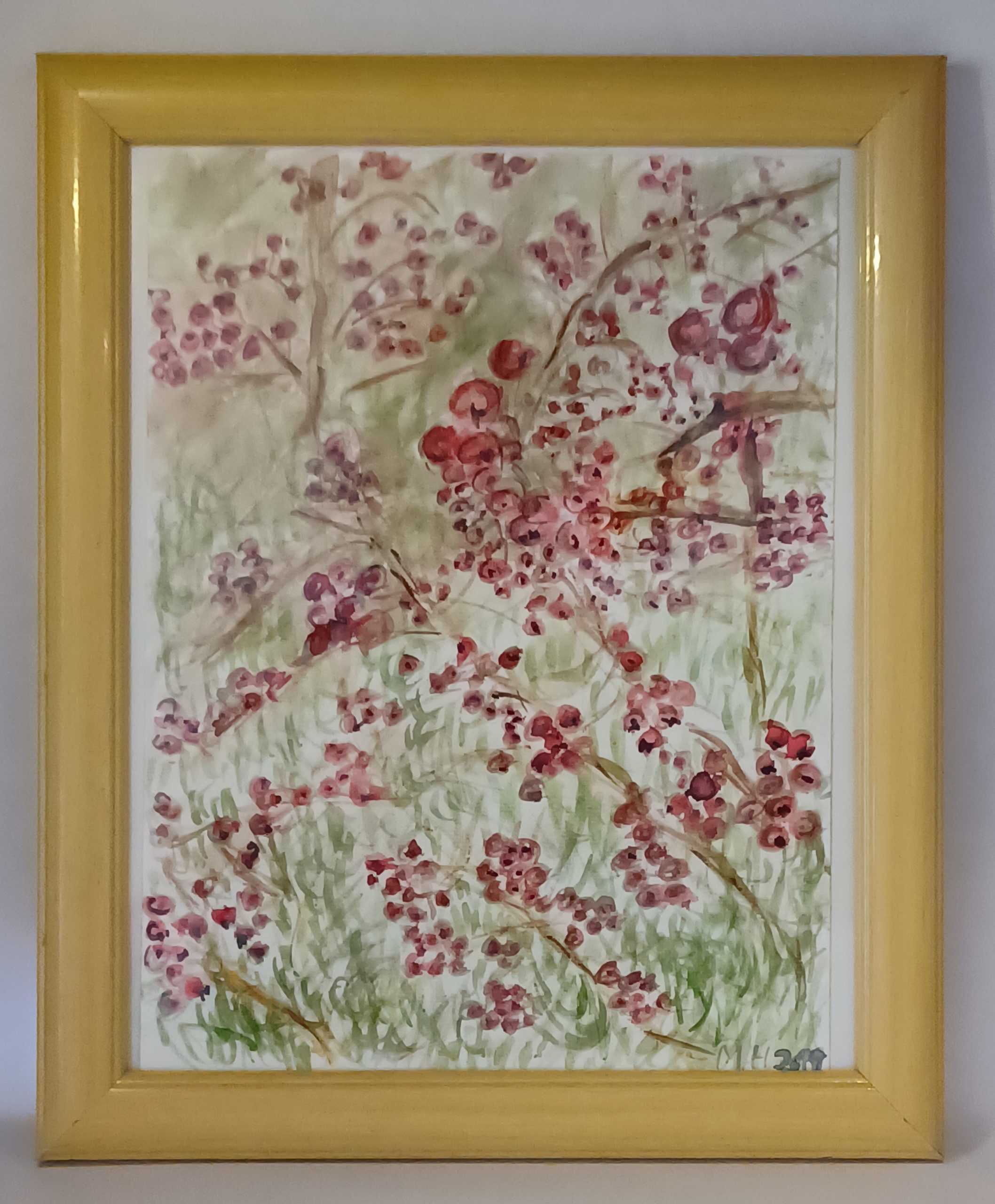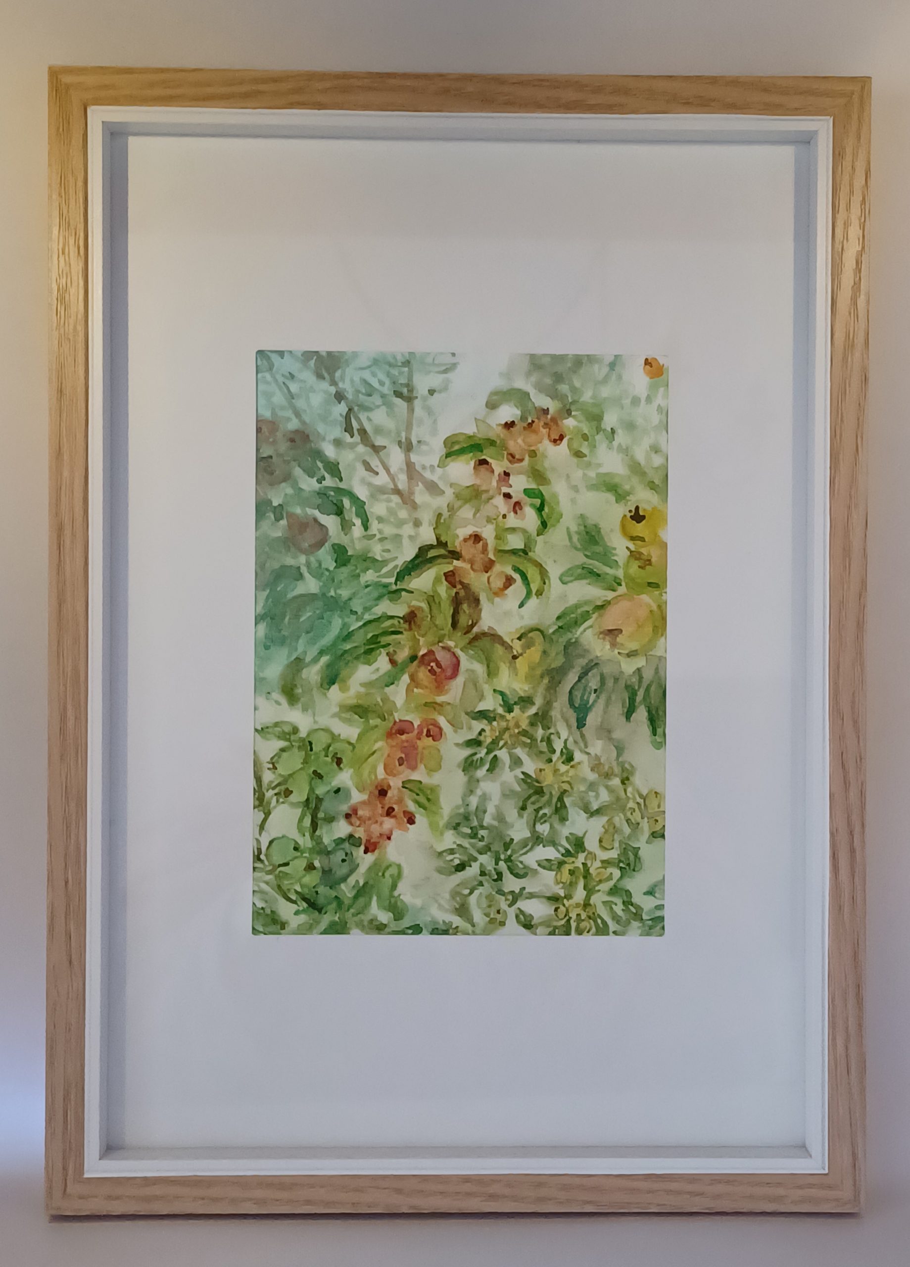 Frutos otoñales nr.1 / Autumnal fruits n0. 1. Acuarela sobre papel. 2022. M. Toftegaard. Medidas 8cm x 12cm